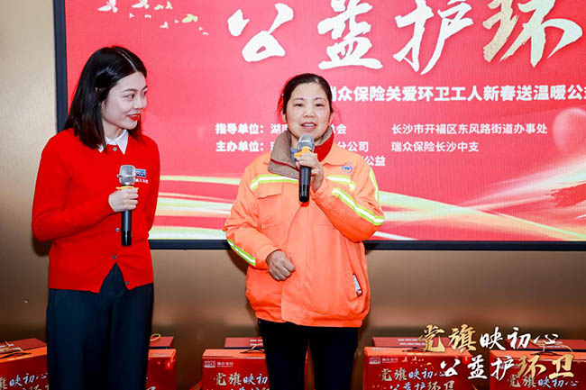 瑞众保险相关负责人在致辞中表示,此次活动是瑞众保险践行初心使命、强化责任担当的具体体现,也是积极响应国家号召、落实“金融为民、金融向善”理念的生动实践,活动旨在通过瑞众保险“T公益”平台,向默默奉献的“城市美容师”们表达最诚挚的敬意与感谢,未来瑞众保险将持续投身公益,不断凝聚向上向善力量,让每一位瑞众人在服务社会、传递温暖的过程中实现更高的职业价值。