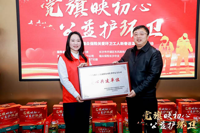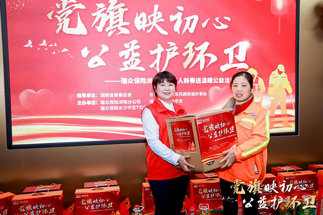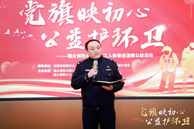 2月9日上午,由湖南省慈善总会及相关政府部门联合主办,瑞众保险承办的“党旗映初心 公益护环卫”关爱环卫工人新春活动温情启幕,活动现场为50名辛勤工作在一线的困境环卫工人送上了三万元的新春慰问金与价值两万元的暖心物资,并揭牌成立了面向环卫工人的“爱心驿站”,以实实在在的行动传递社会关爱,践行金融企业的温度与担当。