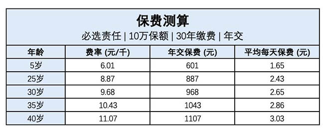 例如,30岁女性投保10万保额30年缴,每年保费仅需968元,日均2.65元。这种“零钱化”的定价,让预算有限的家庭和刚步入社会的年轻人也能够撬动高额保障。